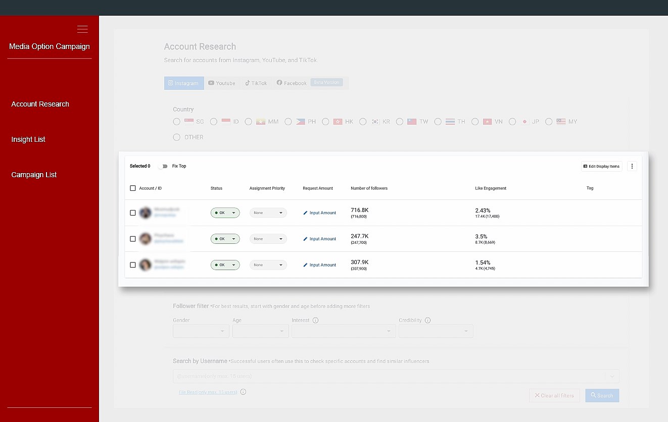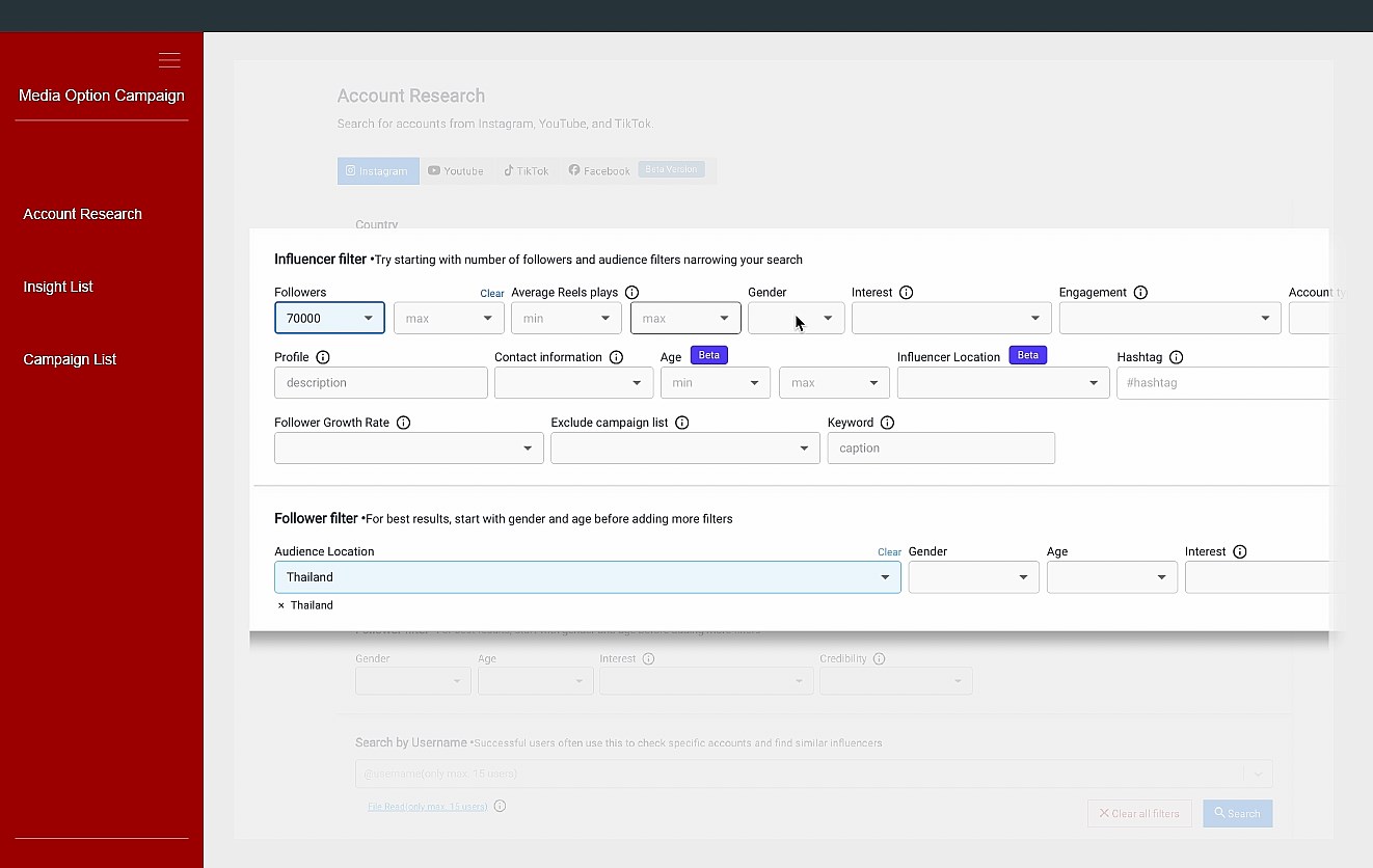 - Precisely plan target audiences by selecting influencers who match the demographics